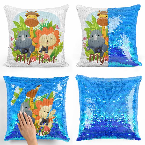 Create in 2 seconds your Magic sequin glitter pillow with Animals of the jungle pattern by personalising it with the first name of your child !