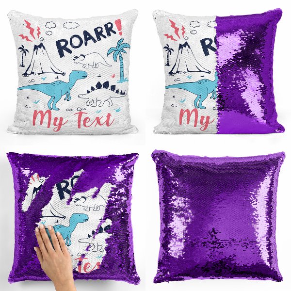 Create in 2 seconds your Magic sequin glitter pillow with Dinosaurs pattern by personalising it with the first name of your child !