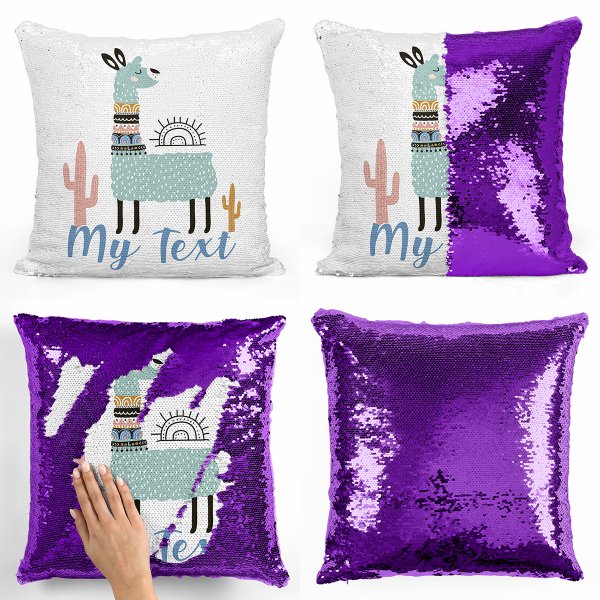 Create in 2 seconds your Magic sequin glitter pillow with Lama pattern by personalising it with the first name of your child !